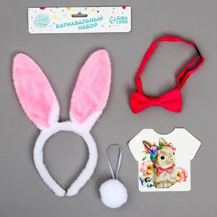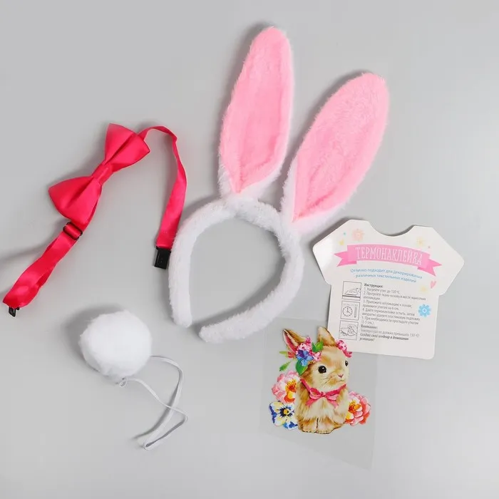 Карнавальный набор «Зайчишка», ушки, хвостик, бабочка, термопринт — Характеристики