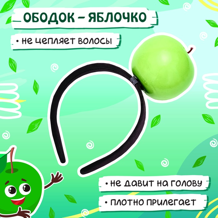 - Ободок. Стильный и мягкий ободок станет ярким акцентом в образе. Он украшен сочным яблочком. Ободок универсального размера, подойдёт для большинства детей.