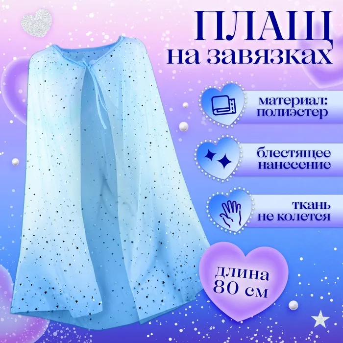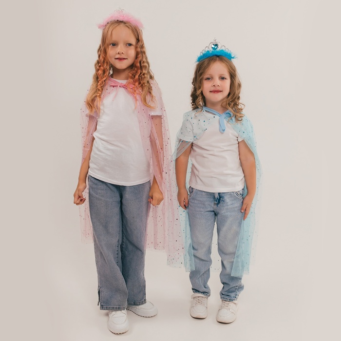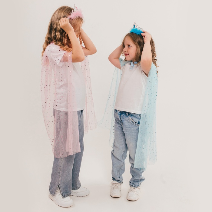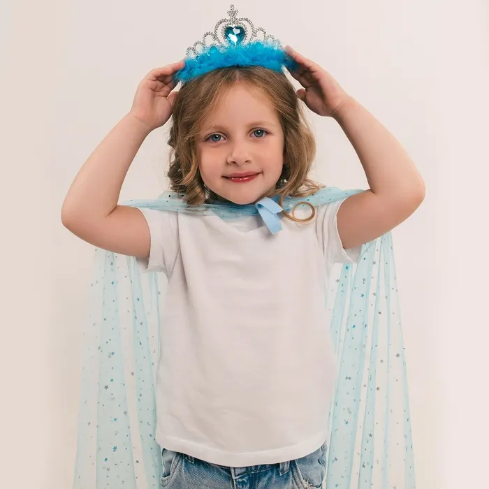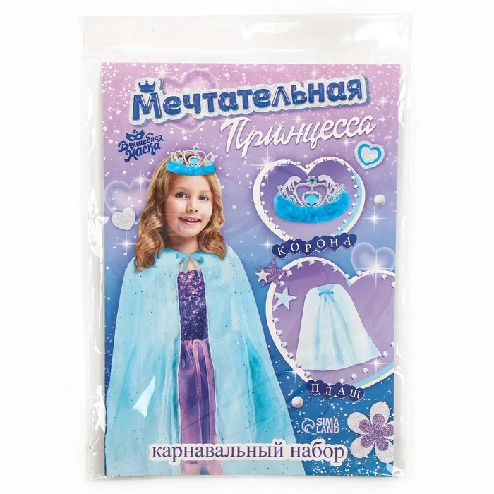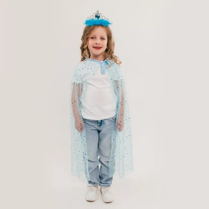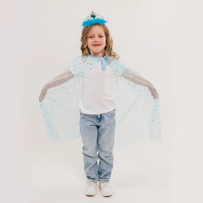 Карнавальный набор с голубым плащом и диадемой – прекрасный выбор для тех, кто хочет добавить в свои игры или праздники немного волшебства и сказочного очарования.