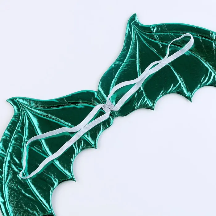 - Крылья изумрудного цвета изготовлены из приятного на ощупь материала с эффектом тиснения, держатся на удобной резинке, которая надежно фиксируется на плечах.