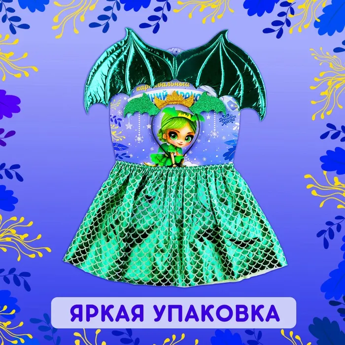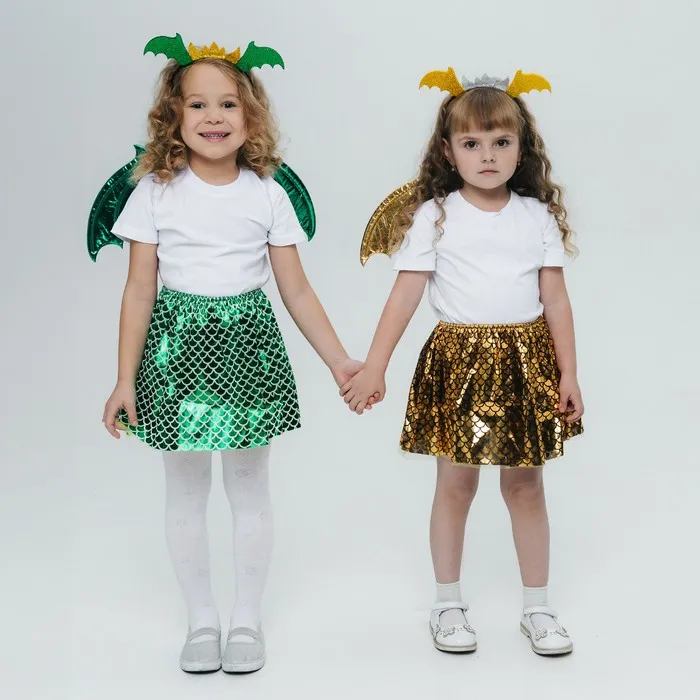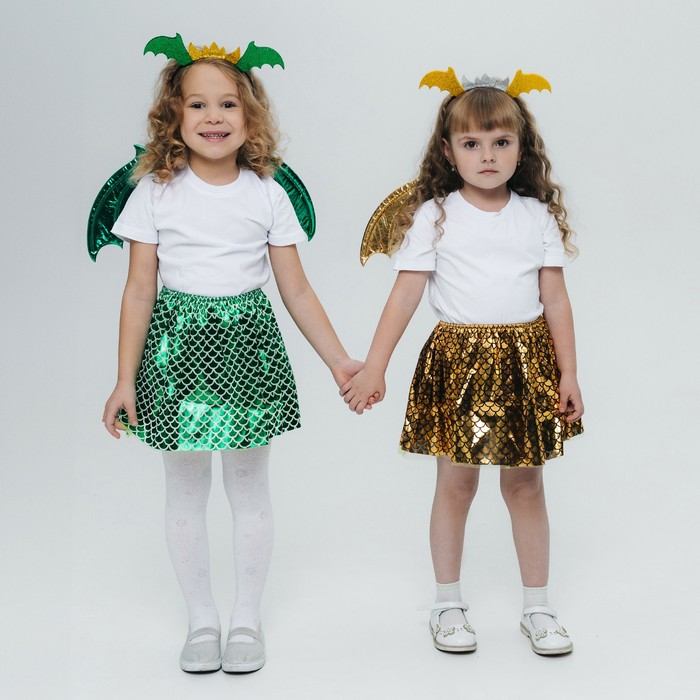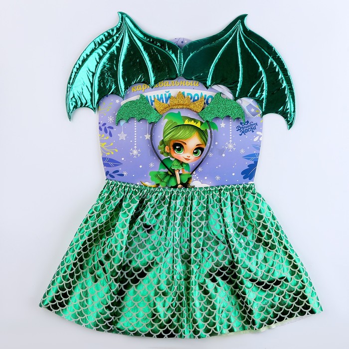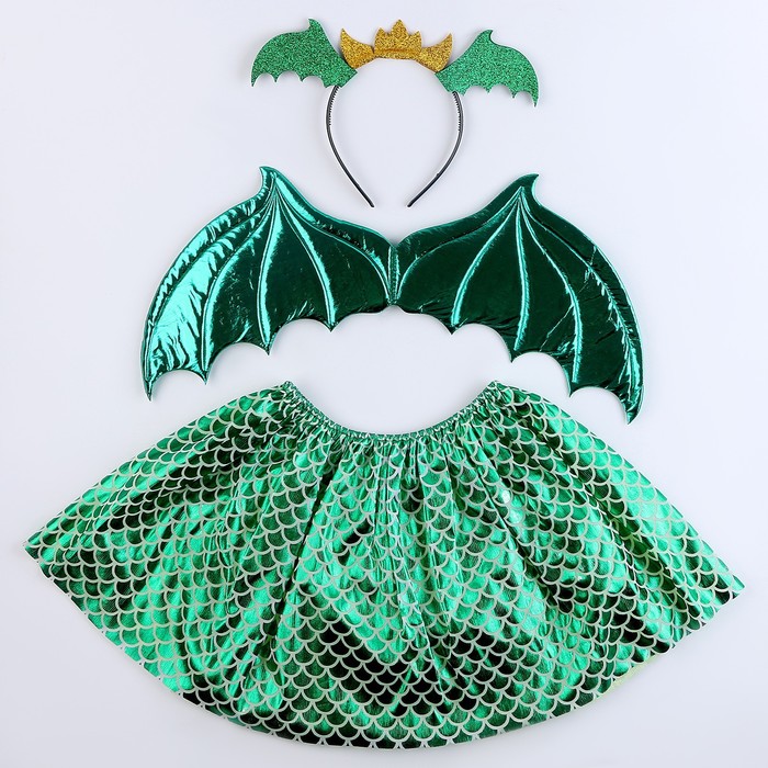 Карнавальный набор «Зимний дракошка», цвет зелёный: крылья, юбка и ободок — Характеристики