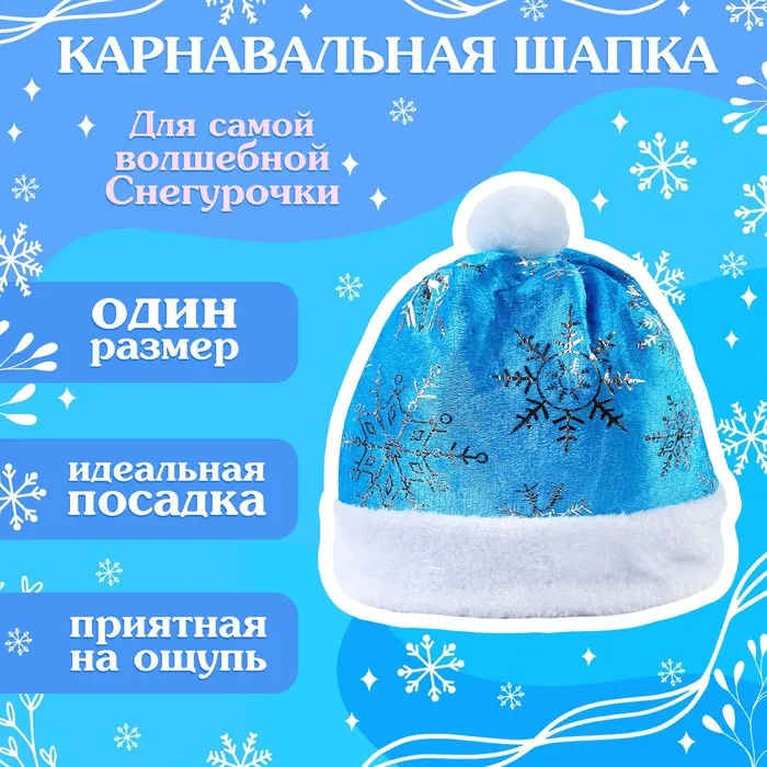 - Удобная и тёплая шапка с мягким, приятным на ощупь материалом. Оригинальный дизайн с серебристыми снежинками добавит образу сказочности.
