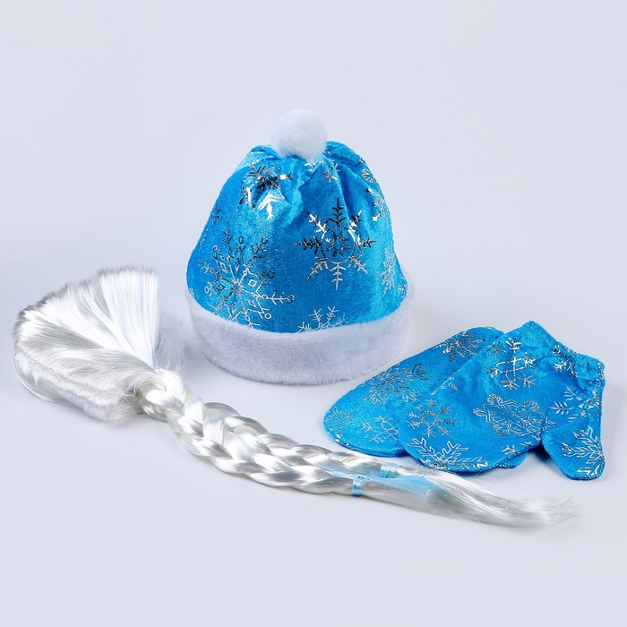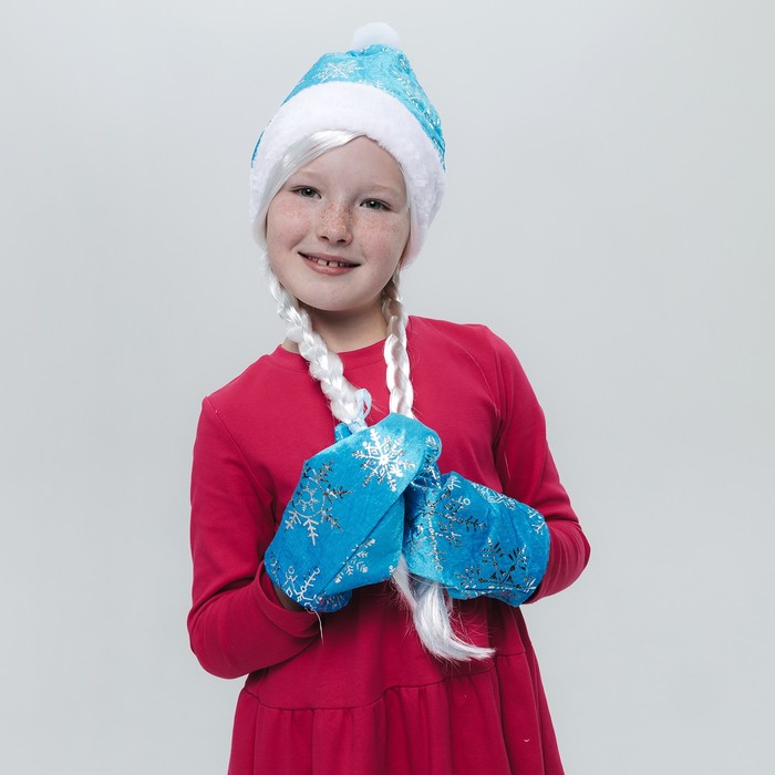 Карнавальный новогодний набор «Волшебная снегурочка»: шапка, варежки, парик с косичками, р. 56–58 см — Характеристики