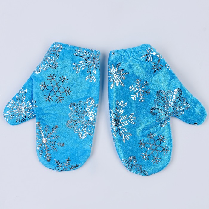 - Мягкие и тёплые варежки с эластичной резинкой, которая надёжно фиксирует их на руке. Блестящие снежинки на варежках перекликаются с рисунком на шапке.