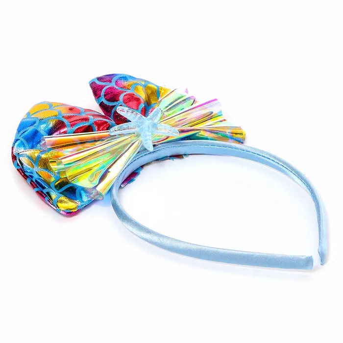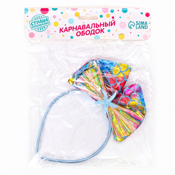 Яркий и праздничный аксессуар, который непременно понравится маленьким модницам! Ободок украшен большим радужным бантом, выполненным из приятного материала. В центре банта голубая морская звезда, которая добавляет образу волшебства и сказочности.