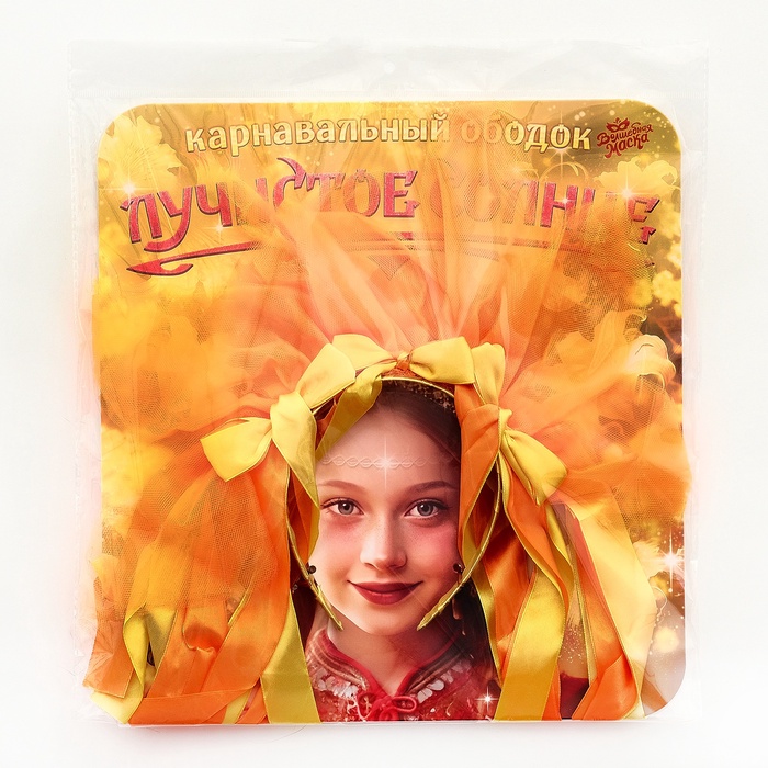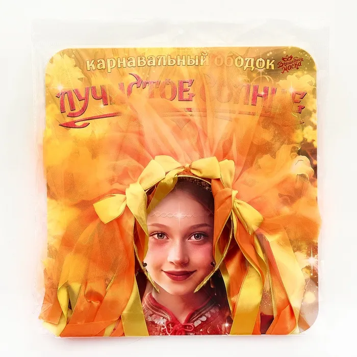Яркий и праздничный карнавальный ободок «Лучистое солнце» станет отличным дополнением к вашему образу. Он выполнен в жизнерадостных жёлто-оранжевых тонах, создавая ощущение тепла и солнечного света.