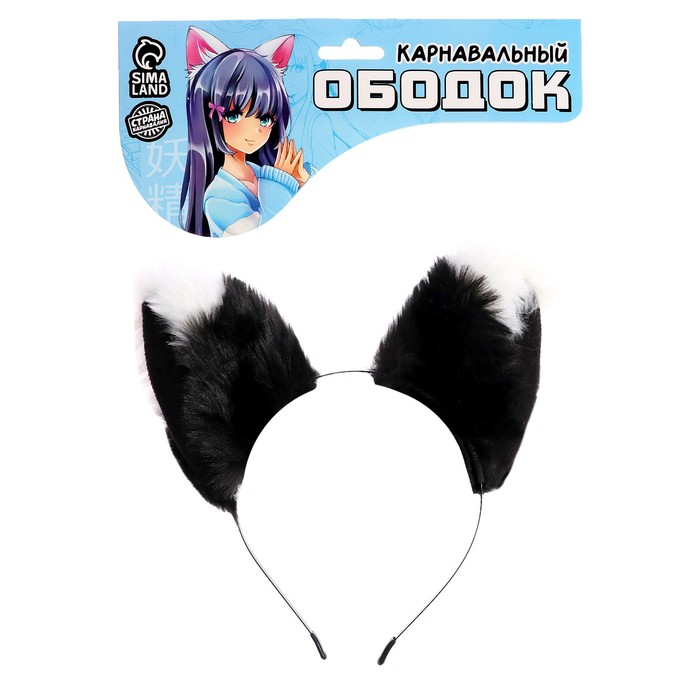 Карнавальный ободок новогодний «Мяу» аниме, черный с белым — Характеристики