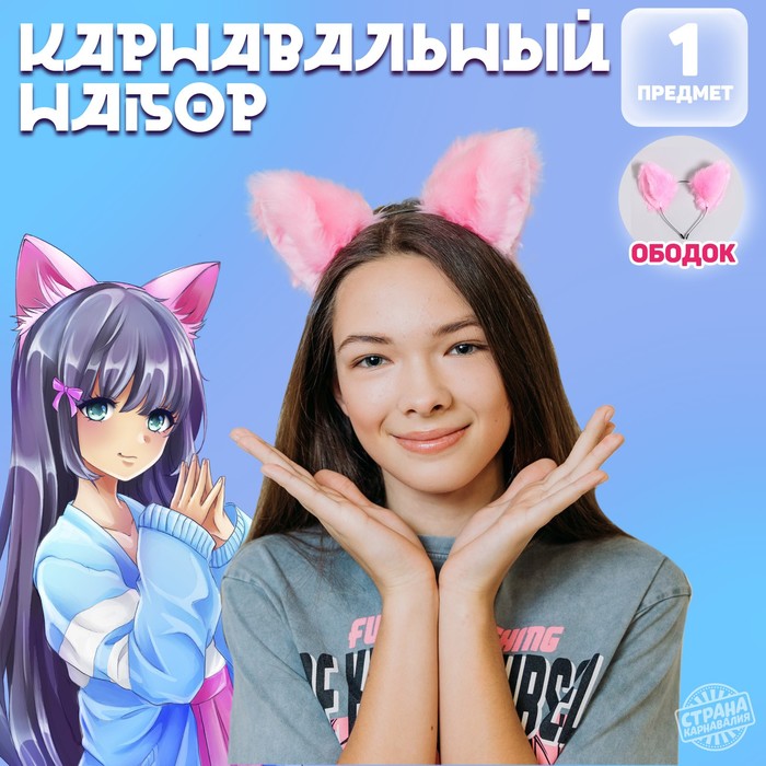 Карнавальный ободок новогодний «Мяу» аниме, розовый