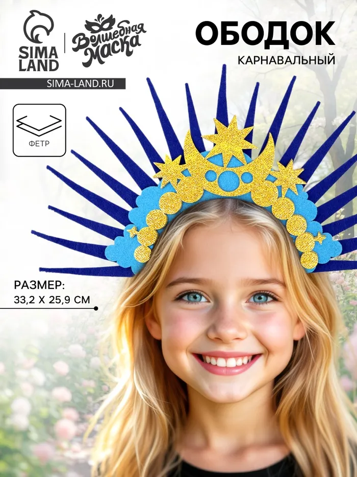 Этот ободок подчеркнет ваш карнавальный костюм, добавив в него нотку таинственности и элегантности. Он станет прекрасным дополнением для любого праздничного образа, при этом оставаясь легким и удобным в носке.
