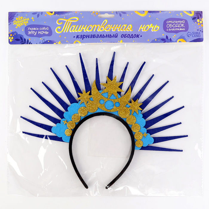 Карнавальный ободок «Таинственная ночь» — это стильный аксессуар, который добавит загадочности и яркости вашему образу. Синий цвет и аккуратный дизайн с декоративными элементами в виде нимба делают его отличным выбором для карнавалов, вечеринок или тематических фотосессий.