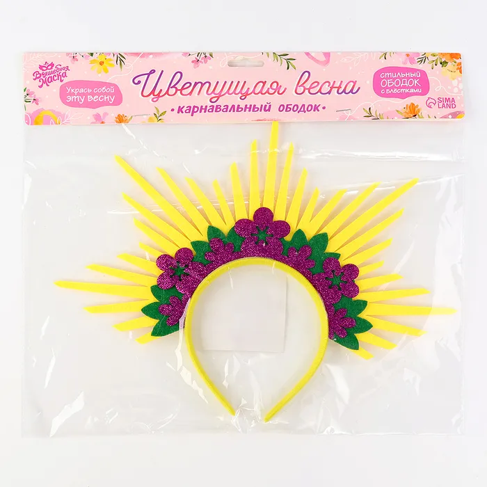 Этот ободок идеально подходит для весенних праздников, карнавалов или фотосессий. Легкий и комфортный, он прекрасно сидит на голове, дополняя образ и добавляя ему яркости и оригинальности.