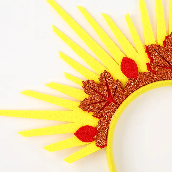 - Диадема выполнена в виде солнечного нимба, с лучами из желтого фетра, имитирующими солнечные лучи