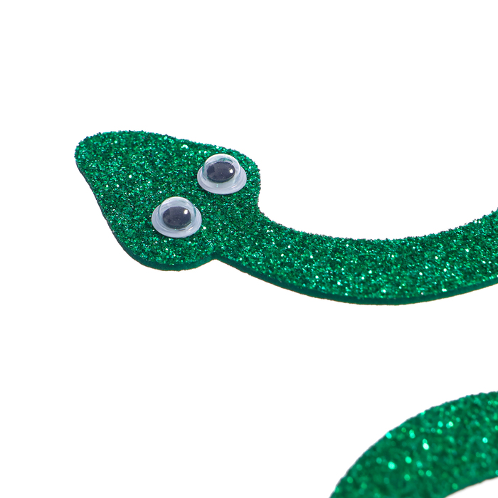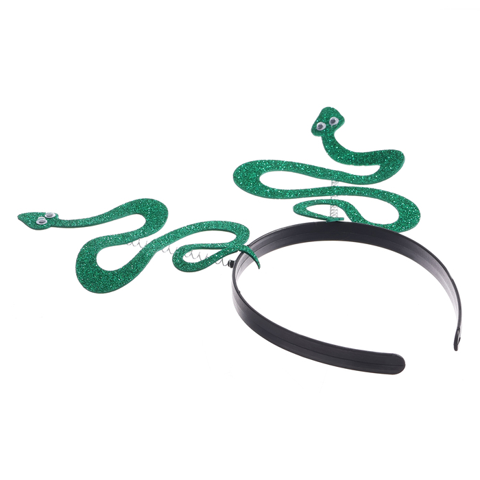 Ободок «Змея» станет настоящей изюминкой вашего карнавального костюма. Ободок украшен блестящими яркими змейками из зелёного фоамирана, которые прикреплены на пружинки.