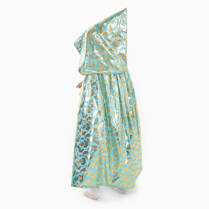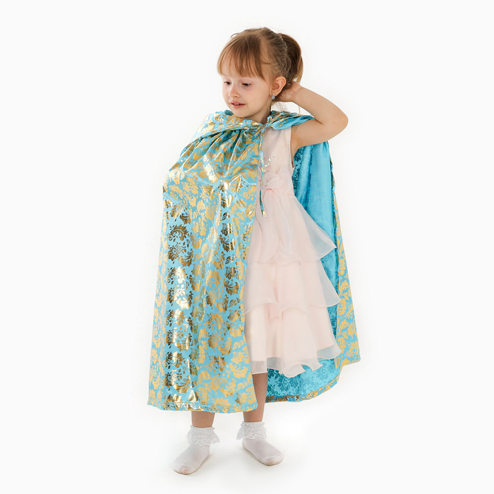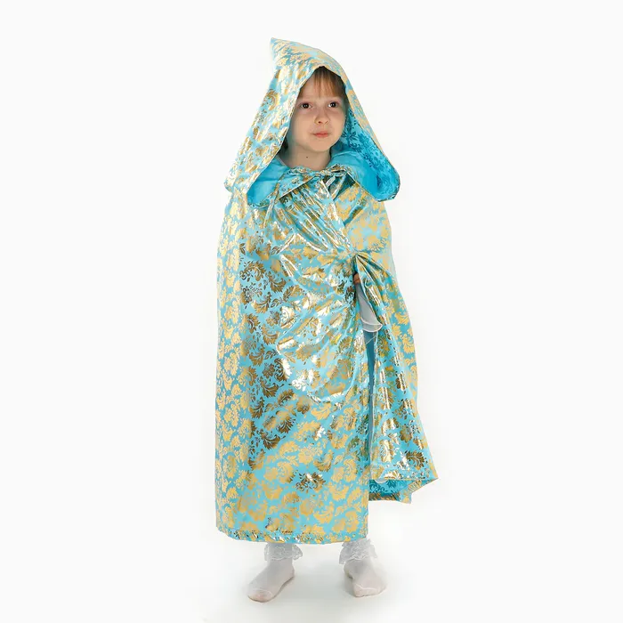 Детский карнавальный плащ с золотым узором превратит любого ребёнка в маленького волшебника. Плащ выполнен из атласа — ткани, которая мягко струится и переливается на свету, создавая праздничное настроение.