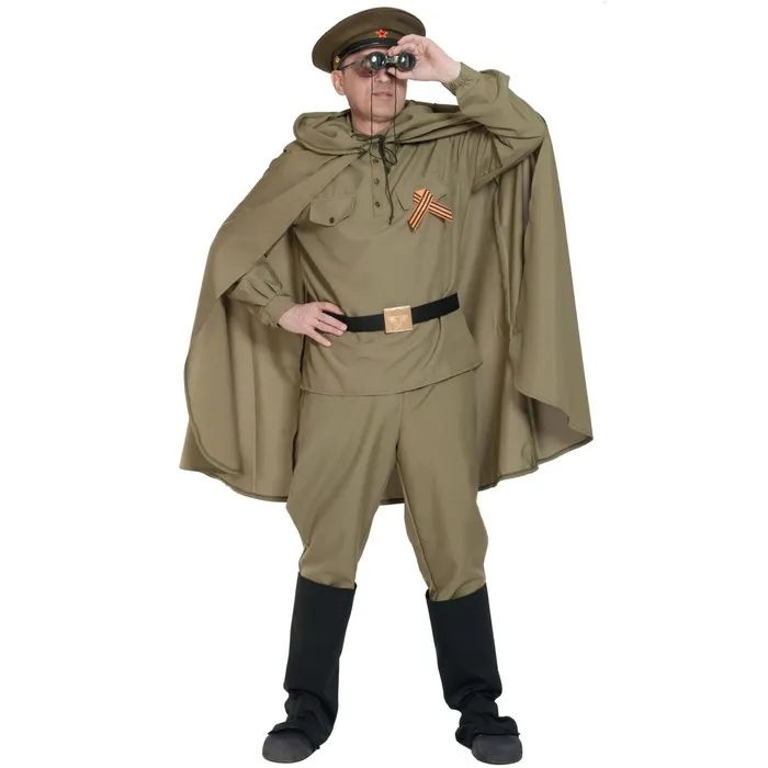 - Карнавальный костюм подойдёт для разных событий: для ведущих утренник в школе или детском саду, концерт, театральное представление, тематическая фотосессия или съёмка военного видеоролика.