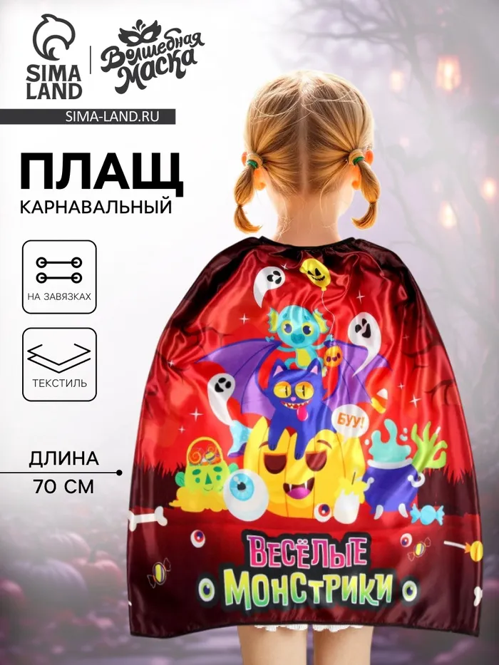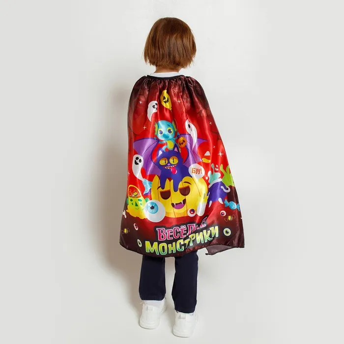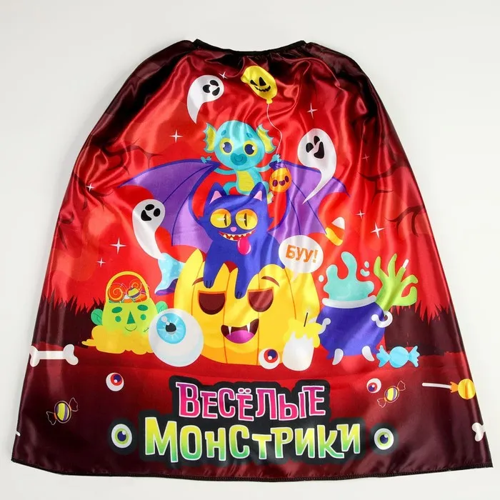 С карнавальным плащом «Весёлые монстрики» вы станете настоящей звездой на тематической вечеринке и поразите всех гостей! Он эффектно дополнит ваш костюм. Создавайте яркие эмоции и воспоминания на целый год вперёд!