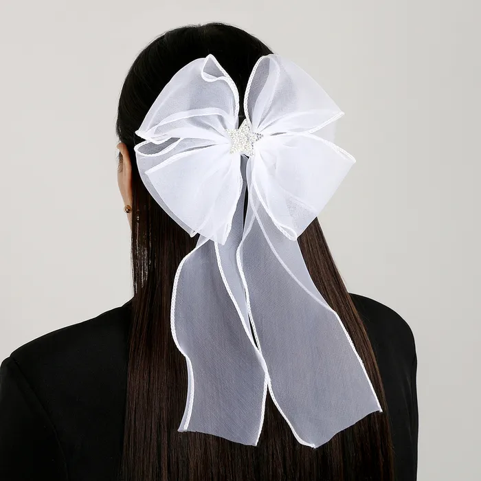 Карнавальный зажим «Бант» с декором-звездой — это стильный и универсальный аксессуар для волос, который подойдет как для повседневной носки, так и для особых случаев.