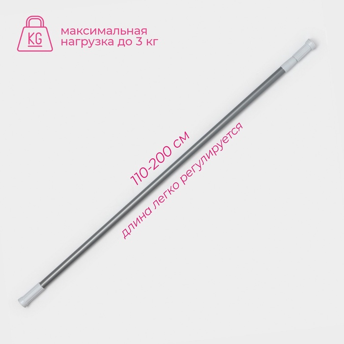 Карниз для ванной Доляна, телескопический, 110-200 см, серый — Характеристики