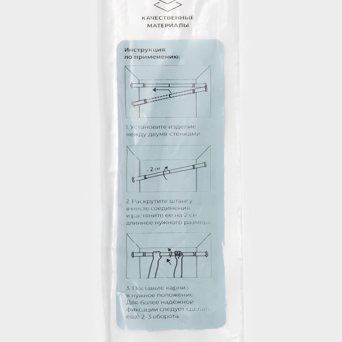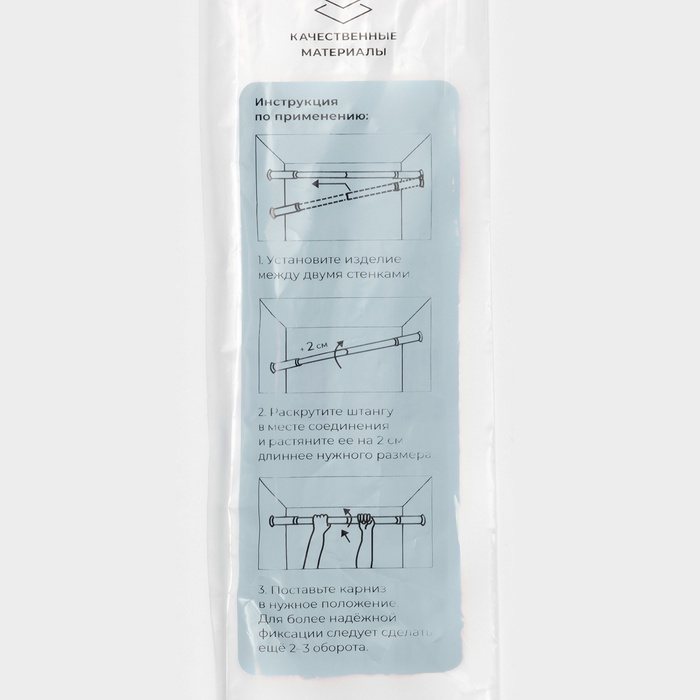 - Универсальный дизайн: телескопическая конструкция позволяет легко устанавливать карниз в зависимости от ваших нужд и размеров ванной комнаты.