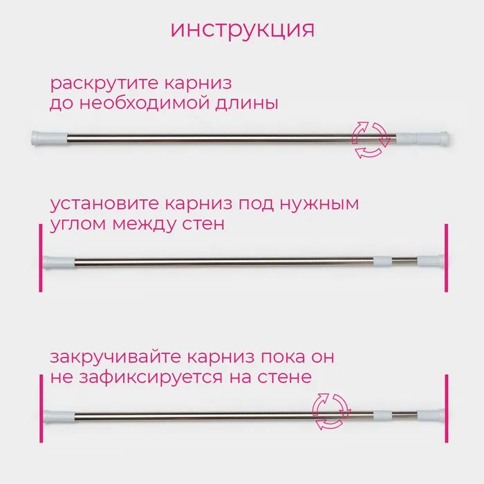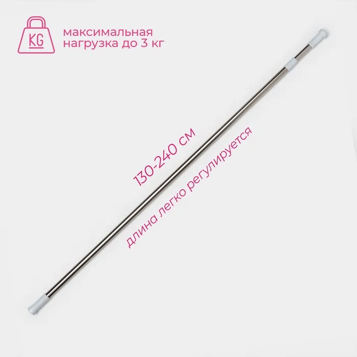 Карниз для ванной Доляна, телескопический, 130-240 см, стальной — Характеристики