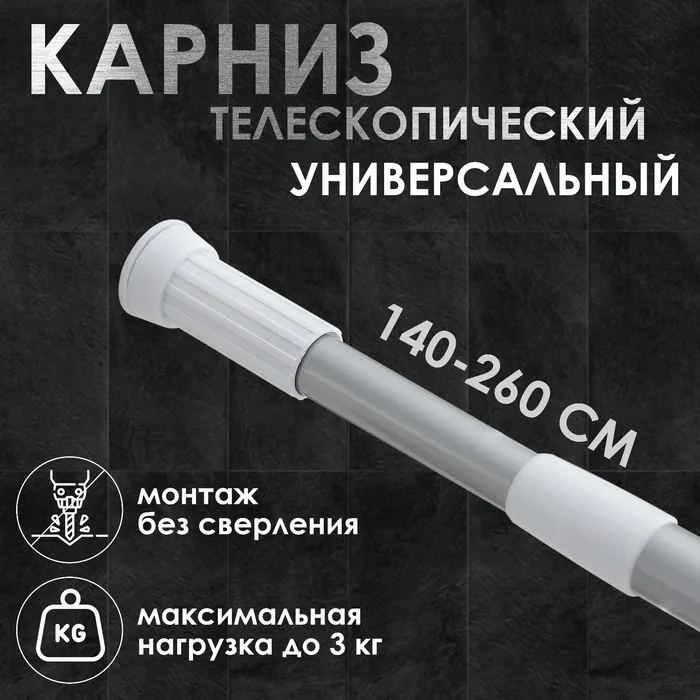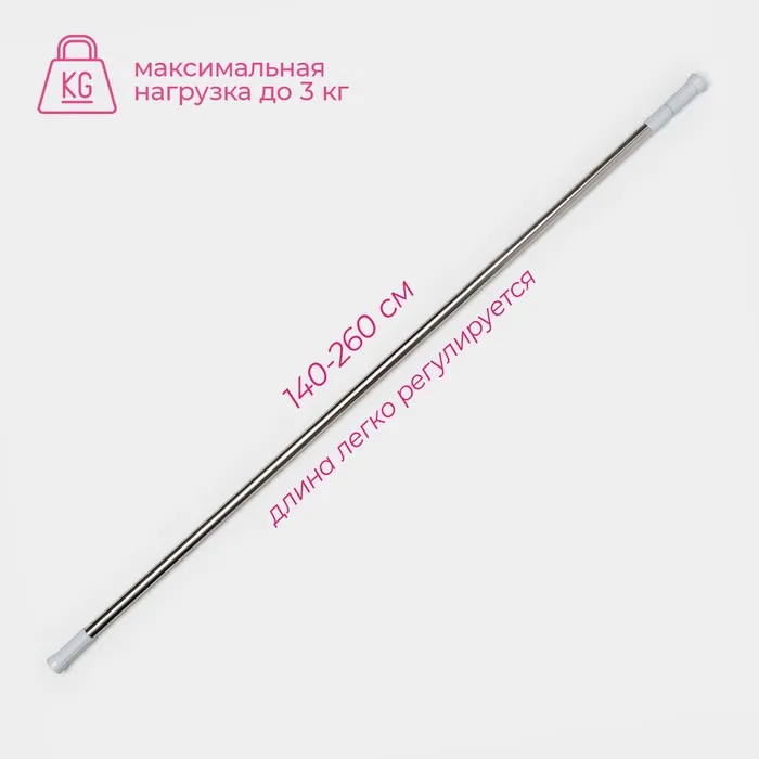 Карниз для ванной Доляна, телескопический, 140-260 см, стальной — Характеристики