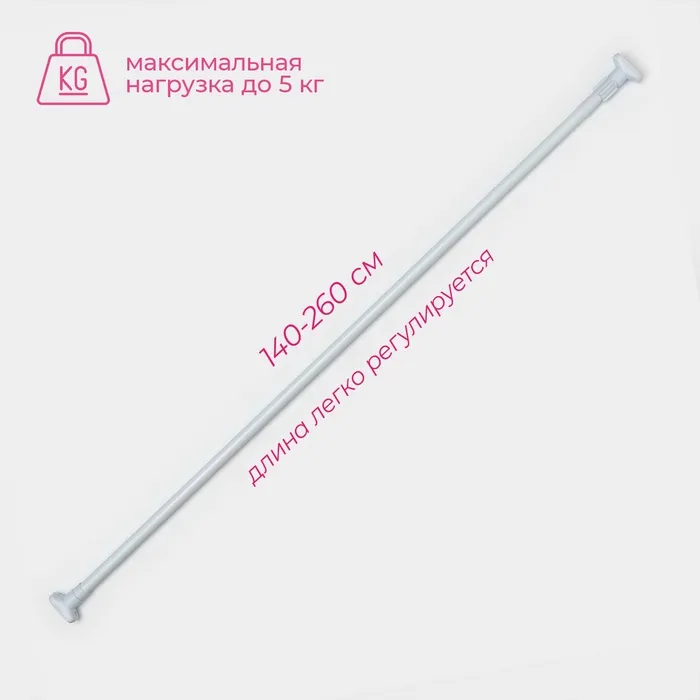 Карниз для ванной Доляна, телескопический, 140–260 см, усиленный, белый — Характеристики