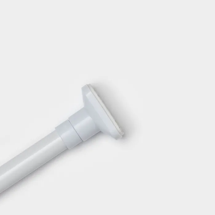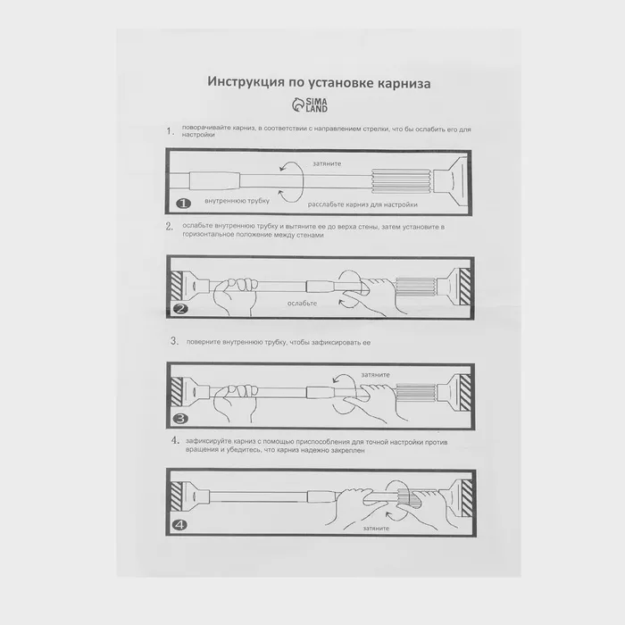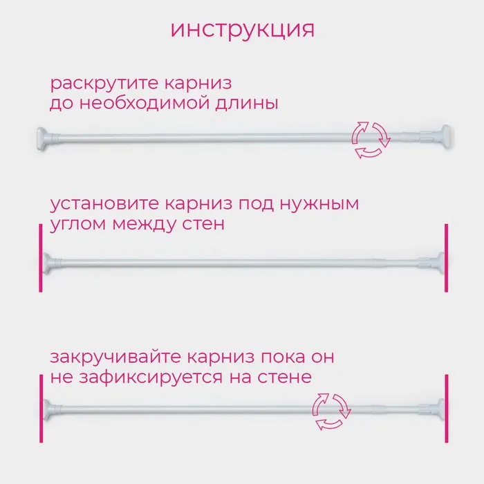 Металлический карниз работает по следующему принципу. Вы устанавливаете его одной стороной в стену и раскручиваете с другой. Так он увеличивается в размере. После того как второй край упрётся, следует сделать ещё 2–3 оборота для более надёжной фиксации. Затем просто навесьте штору с крючками и распрямите её по всей длине.