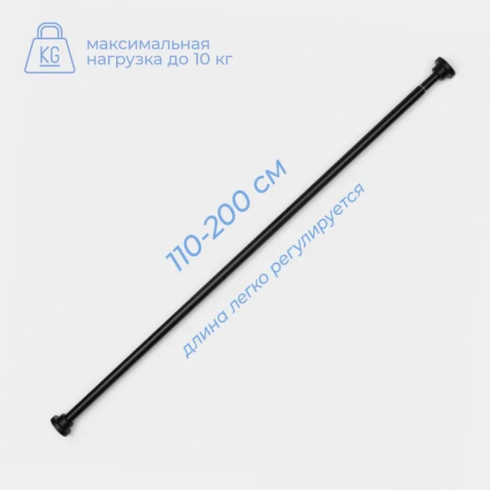 Карниз для ванной SAVANNA, телескопический, 110-200 см, нержавеющая сталь, чёрный — Характеристики