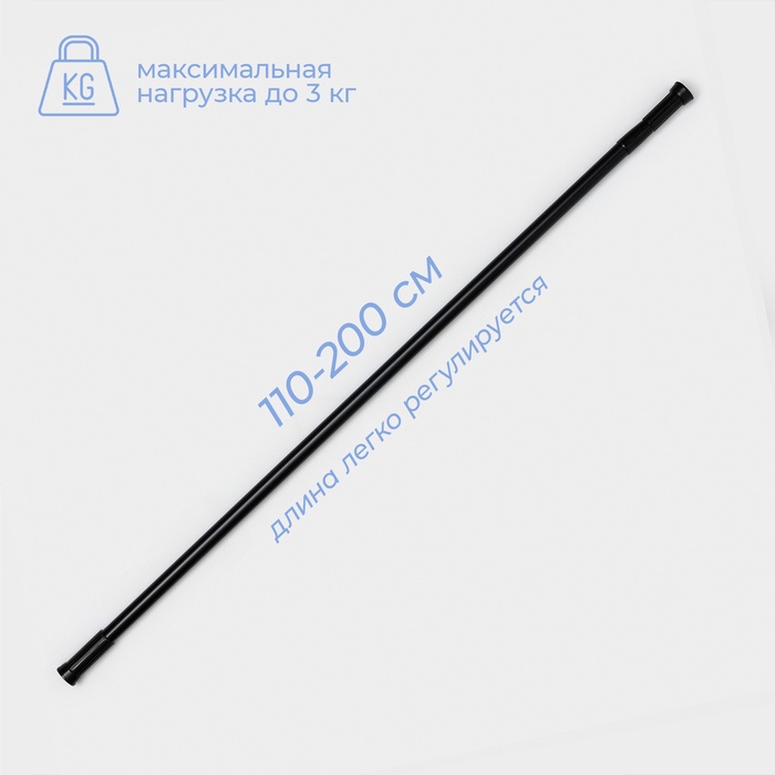 Карниз для ванной SAVANNA, телескопический, d заглушки = 3 см, d трубки = 2 см, 110-200 см, чёрный — Характеристики