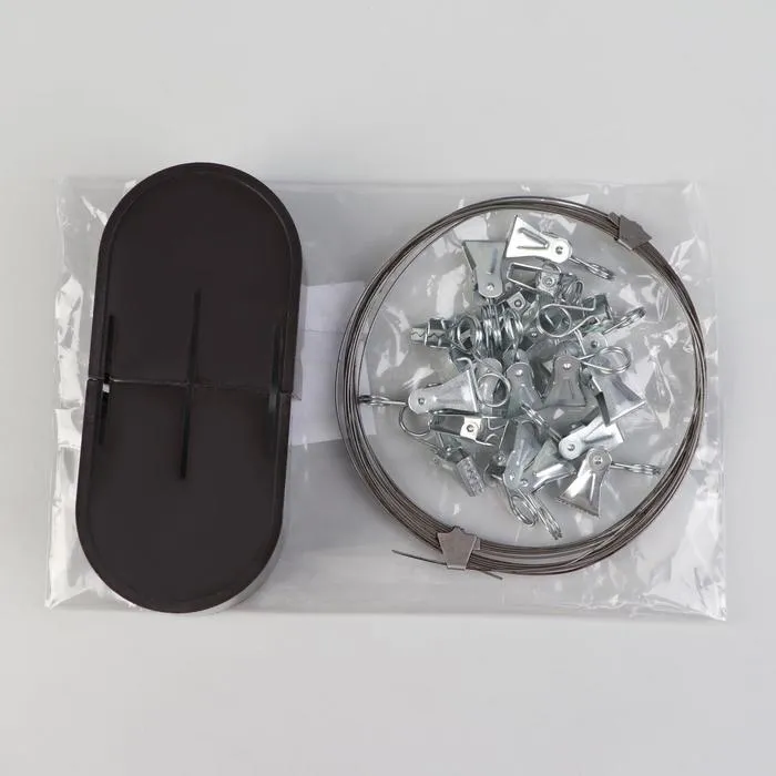 Струнный карниз состоит из металлической струны и кронштейнов, которые крепятся на потолок. Тросовый карниз применяется для лёгких штор и тюля. В комплект входят крепления и зажимы для штор. Струну можно обрезать до любой необходимой длины.