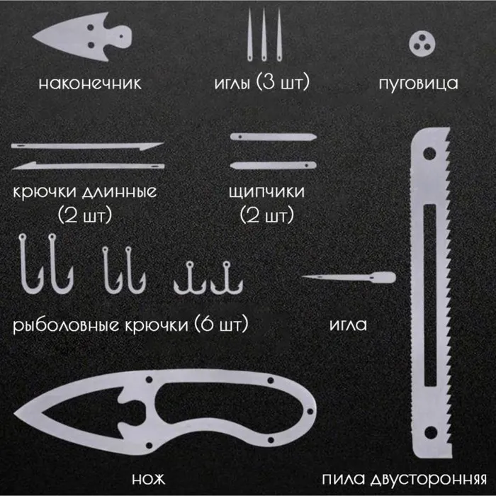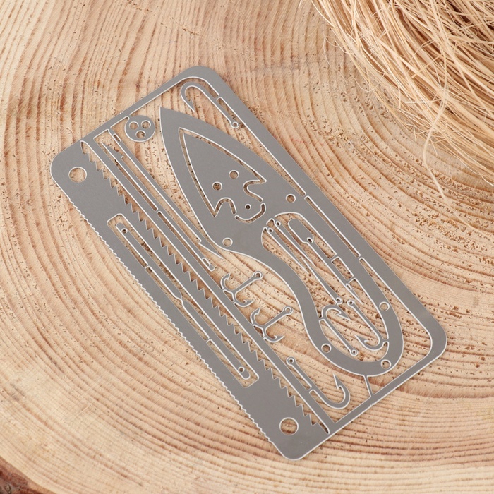 Она не займет много места в кошельке или заднем кармане брюк, бардачке автомобиля или мотоцикла. Карта удобно крепится на шлейку походного рюкзака и включает в себя одиннадцать самых полезных функций, которые выручат вас в любой форс-мажорной ситуации.