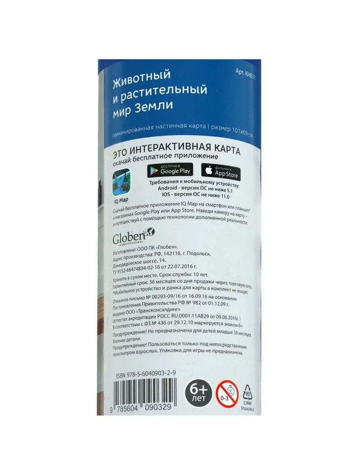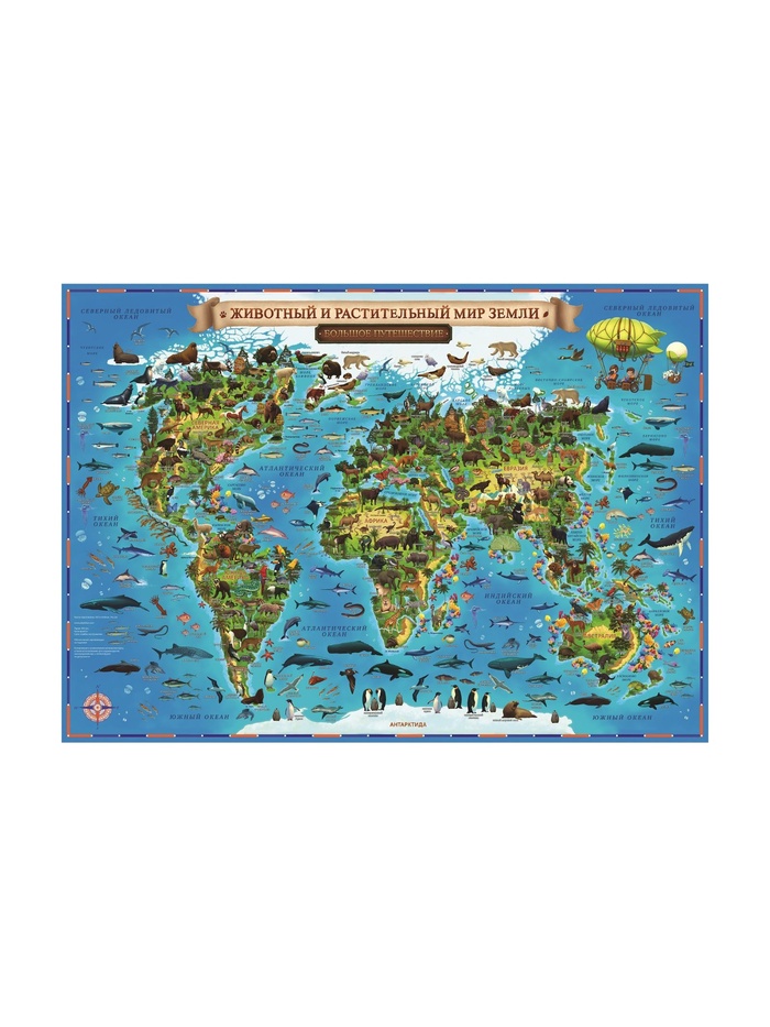 Карта «Животный и растительный мир Земли» создана специально для почемучек-дошколят. Огромные кашалоты, хищные акулы, забавные панды, величественные тигры, яркие бабочки и другие животные поселятся в детской вместе с картой.