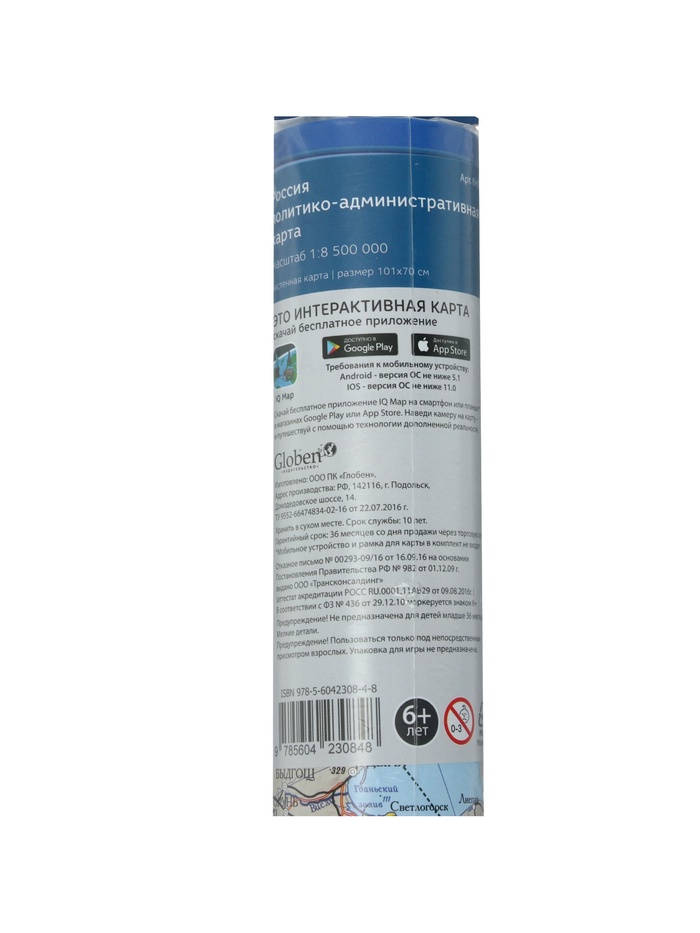 Карта России политико-административная, 101 x 70 см, 1:8.5 млн, без ламинации — Характеристики