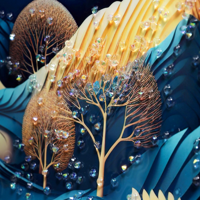 - Качество материалов: Использованы стойкие акриловые краски. Они сохраняют цвет, не выгорают со временем. Плотный художественный холст обеспечивает четкую передачу текстуры мазков.