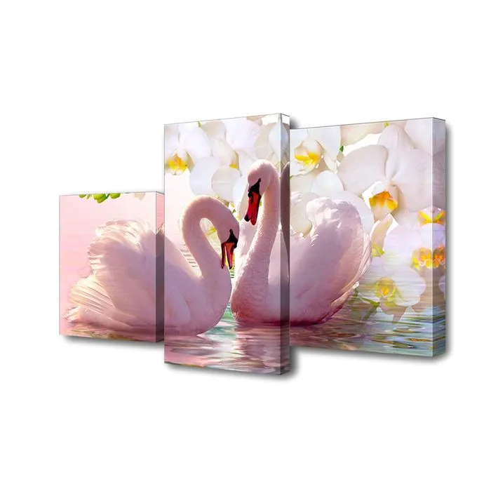 Картина модульная на подрамнике "Пара лебедей,белые цветы" 26х50; 26х40; 26х32, 50х80см