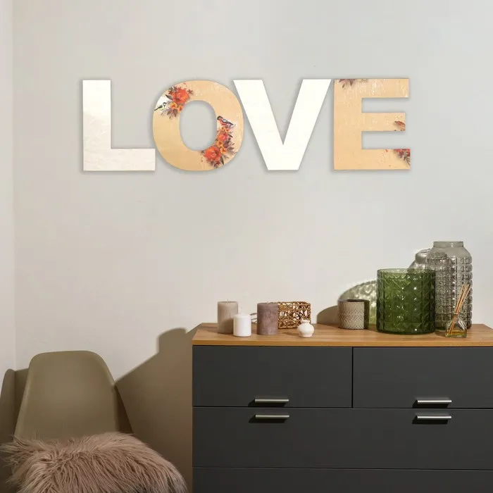 Панно буквы "LOVE" высота букв 19,5 см,набор 4 детали беж