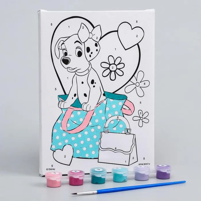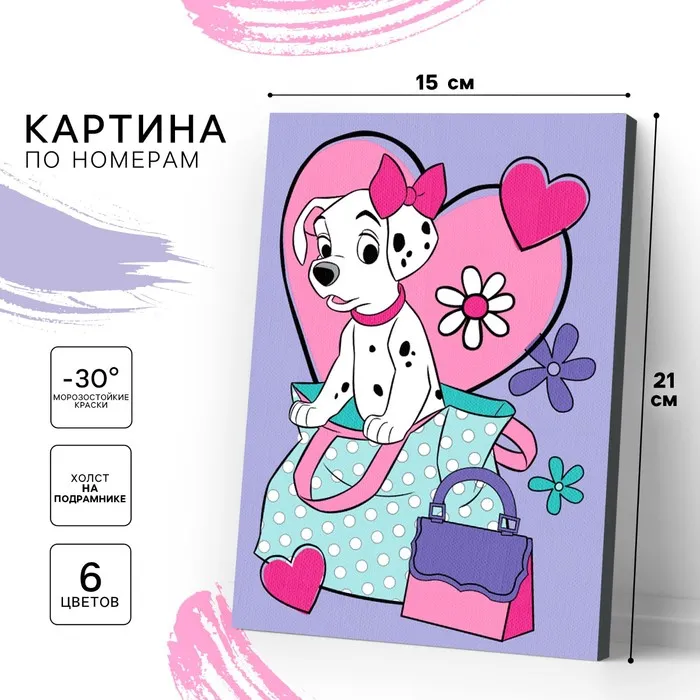 Картина по номерам для детей «101 Далматинец», 21 х 15 см понравится и детям, и взрослым.