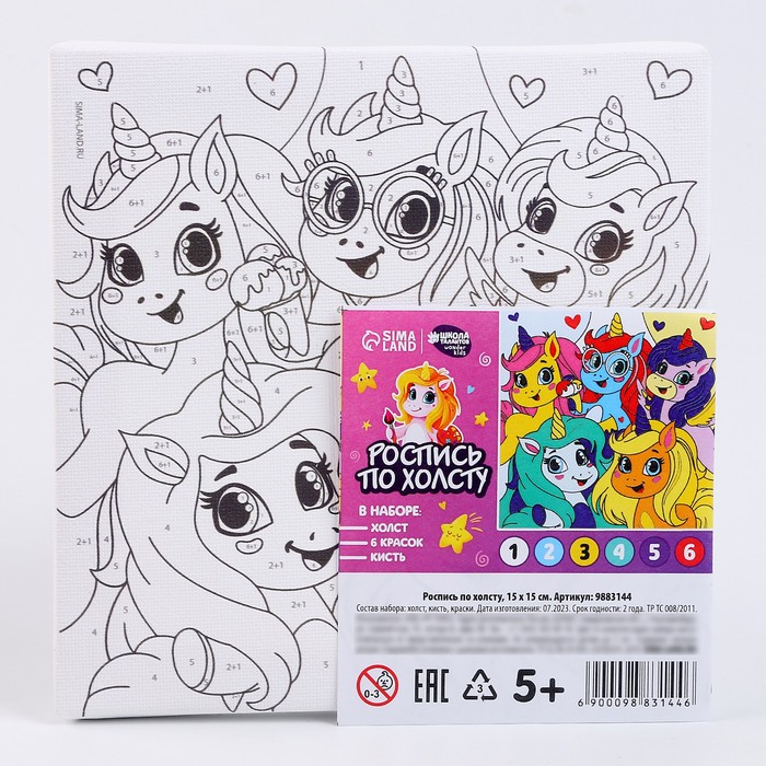 Картина по номерам для детей «Единорожки-друзья», 15 х 15 см — Характеристики