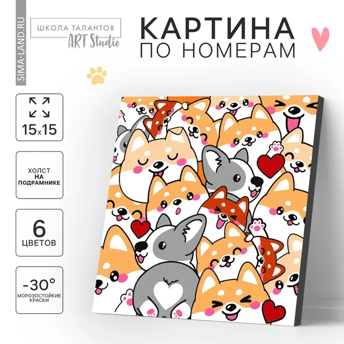 Картина по номерам для детей «Корги», 15×15 см — Характеристики