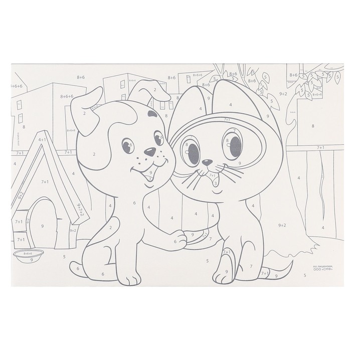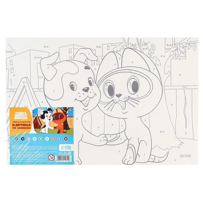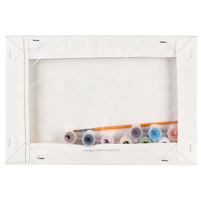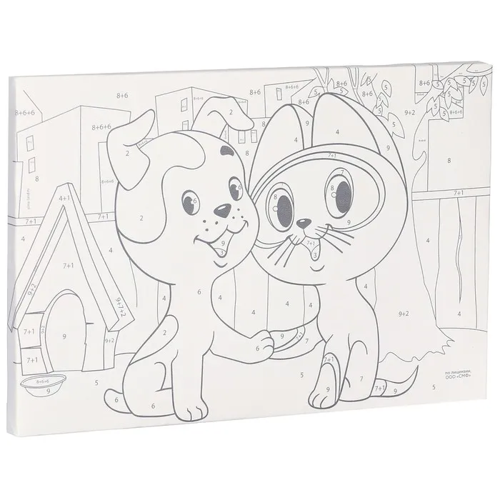 Холст разделён на фрагменты, на каждом из которых указано число, соответствующее цвету, которым нужно закрасить данный участок. В набор входят все необходимые оттенки красок, каждый из которых пронумерован.
