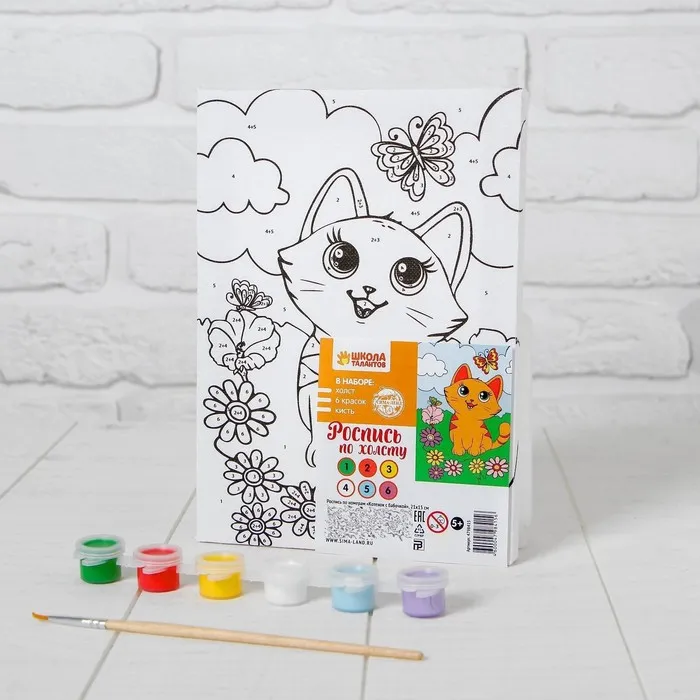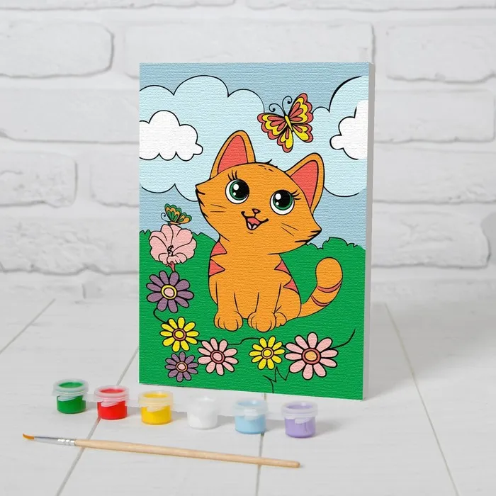 Картина по номерам для детей «Котёнок с бабочкой», 21×15 см — Характеристики