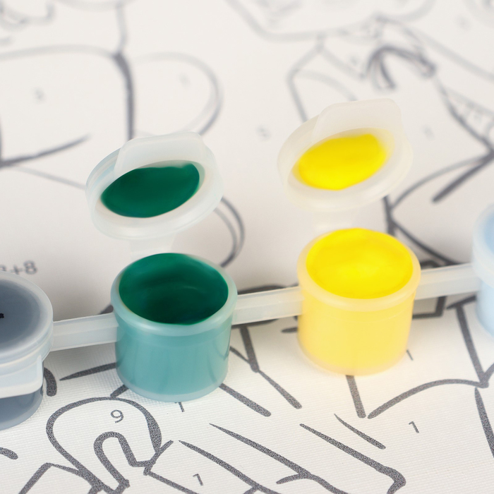 Холст разделён на фрагменты, на каждом из которых указано число, соответствующее цвету, которым нужно закрасить данный участок. В набор входят все необходимые оттенки красок, каждый из которых пронумерован.