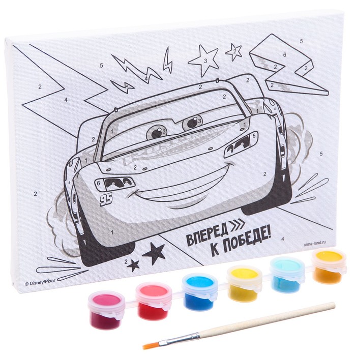 Картина по номерам для детей «Молния Маккуин», 21 х 15 см, Тачки понравится и детям, и взрослым.