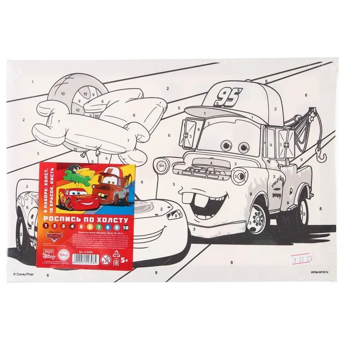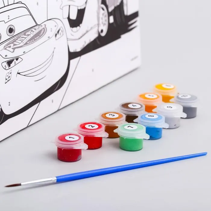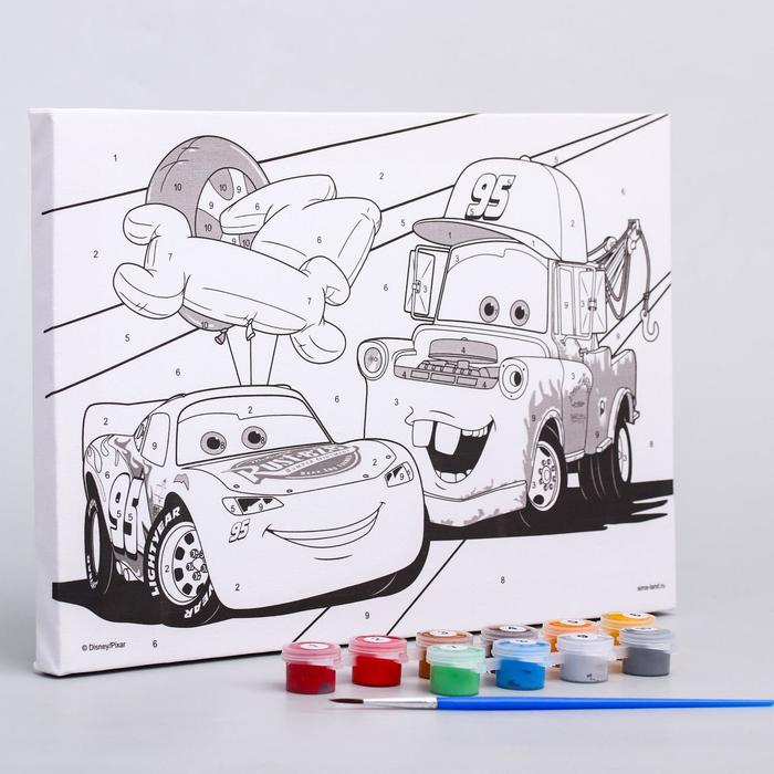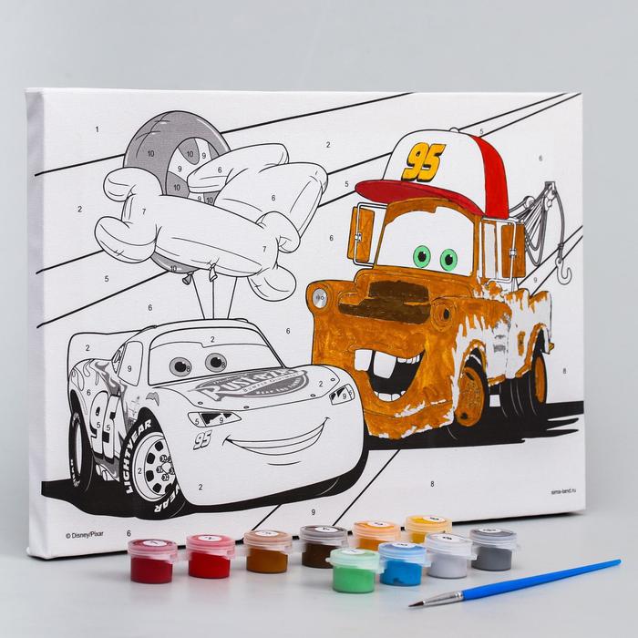 Картина по номерам для детей «Молния Маккуин и Мэтр» 20×30 см, Тачки понравится и детям, и взрослым.