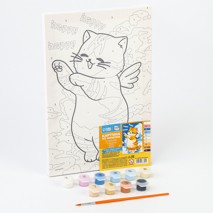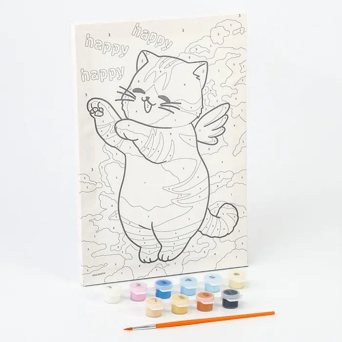 Картина по номерам для детей на холсте с подрамником «Счастливый котик», 20 х 30 см — Характеристики