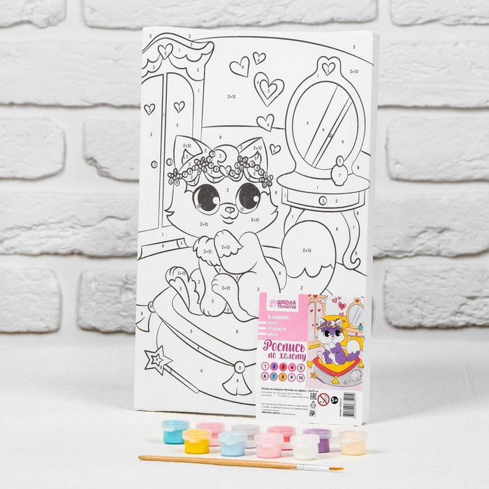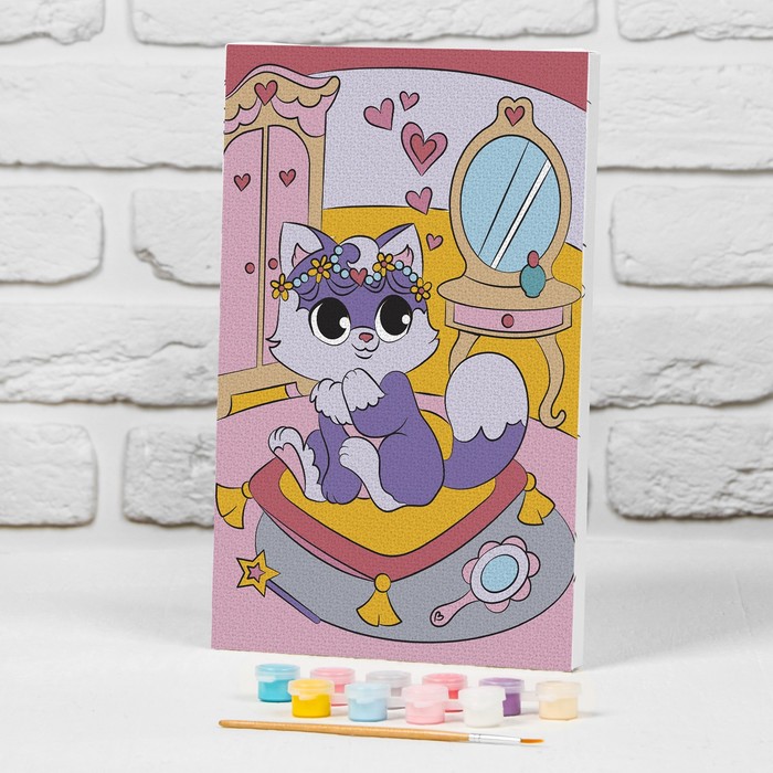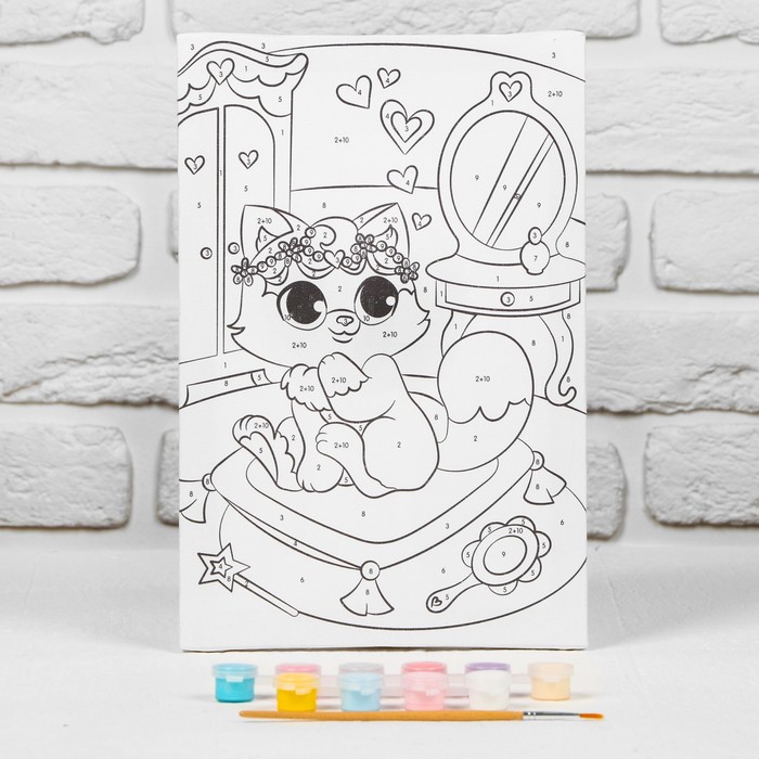 Картина по номерам для детей на подрамнике «Котёнок на пуфике», 20 х 30 см — Характеристики