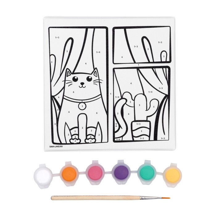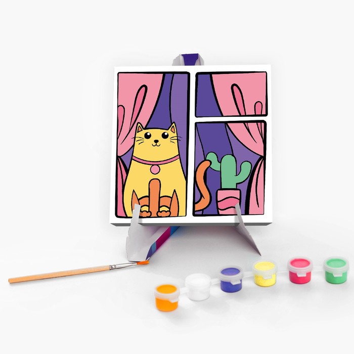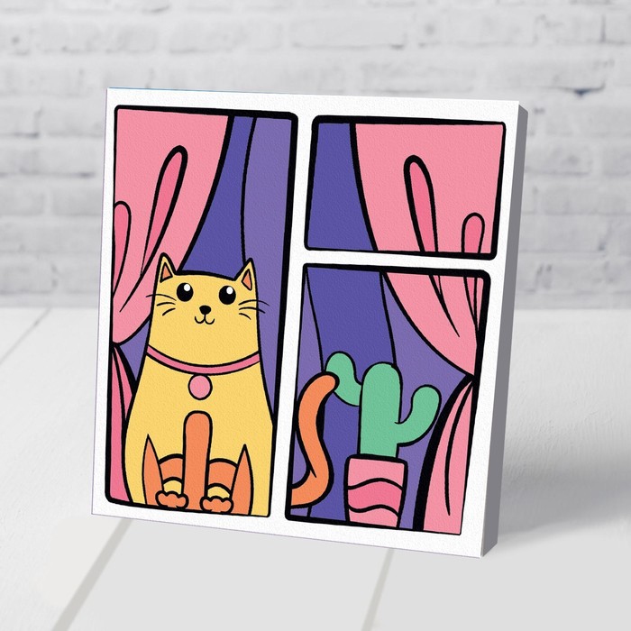 Картина по номерам для детей на подставке «Кот в окне», 15 х 15 см — Характеристики