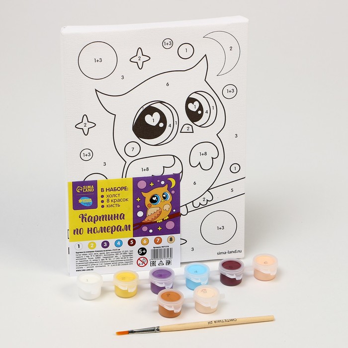 Картина по номерам для детей «Совушка на ветке», 21 х 15 см — Характеристики
