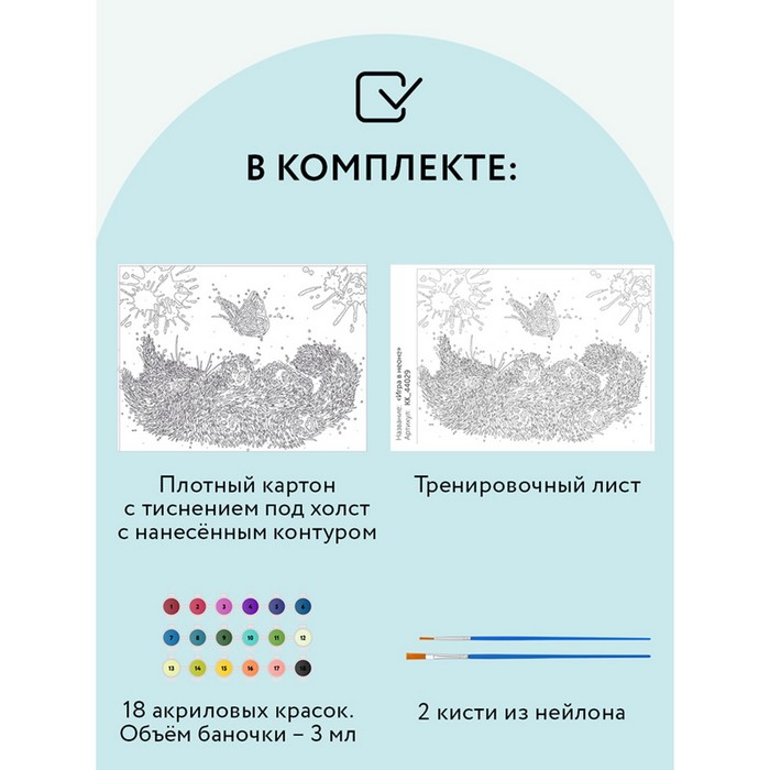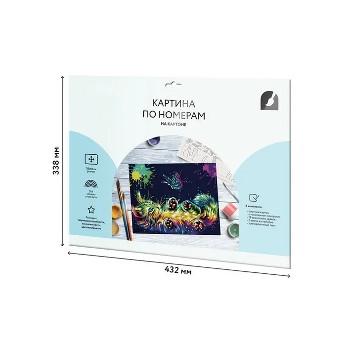 Картина имеет средний уровень сложности, поэтому подойдёт для взрослого и ребёнка.Краски обладают высокой плотностью — это позволит перекрыть нанесённый контур в 1 слой.Рисунок напечатан на картоне, поэтому вес холста гораздо меньше, чем у картин на подрамнике.Картина упакована в красивую коробку, поэтому подойдёт в качестве готового подарка.