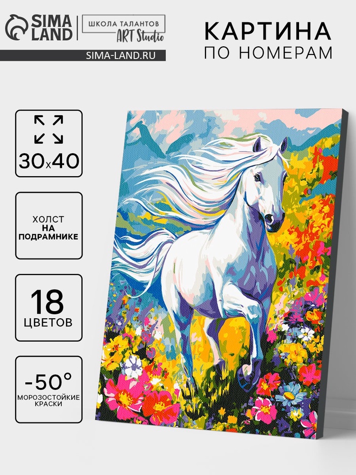 Картина по номерам на холсте «Белый конь» 30×40 см — Характеристики